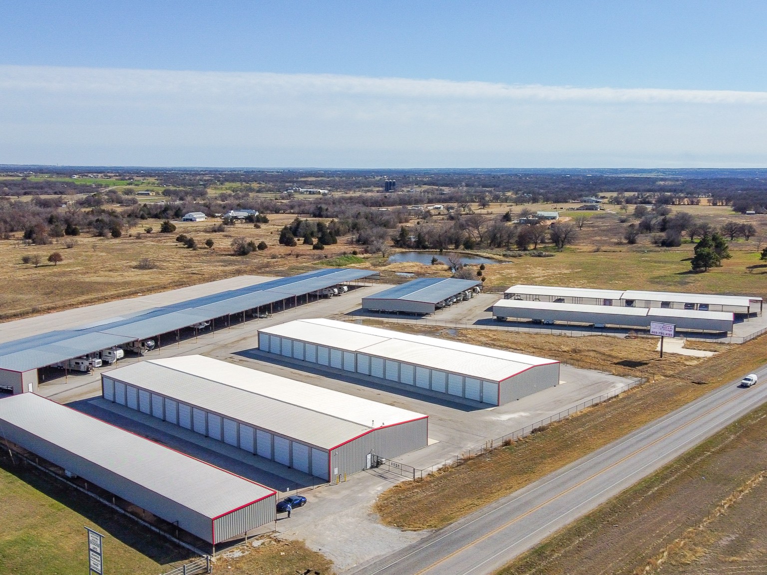Van Alstyne Boat & RV Storage totals 112,540 net rentable square feet with 252 units (101 fully enclosed units, 149 covered parking spaces, and two open parking spaces) on approximately 23.90 acres. The facility features a gated entry with key-code access, wide driveways for convenient turning radius, a full-service on-site management office, 14’ high roll-up doors, 24-hour video surveillance, and asphalt drives.
